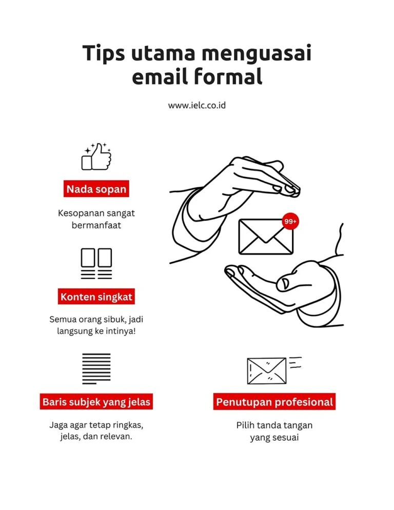 Meski terlihat sepele, menulis email formal memiliki sejumlah aturan tertentu yang sebaiknya kalian ikuti agar terlihat profesional. Enam langkah di atas akan sangat membantu ketika kalian akan membuat sebuah email formal yang efektif dan efisien. Namun tentu saja kalian tetap perlu “jam terbang” cukup sampai akhirnya terlatih membuat email formal yang “luwes” namun tetap profesional.